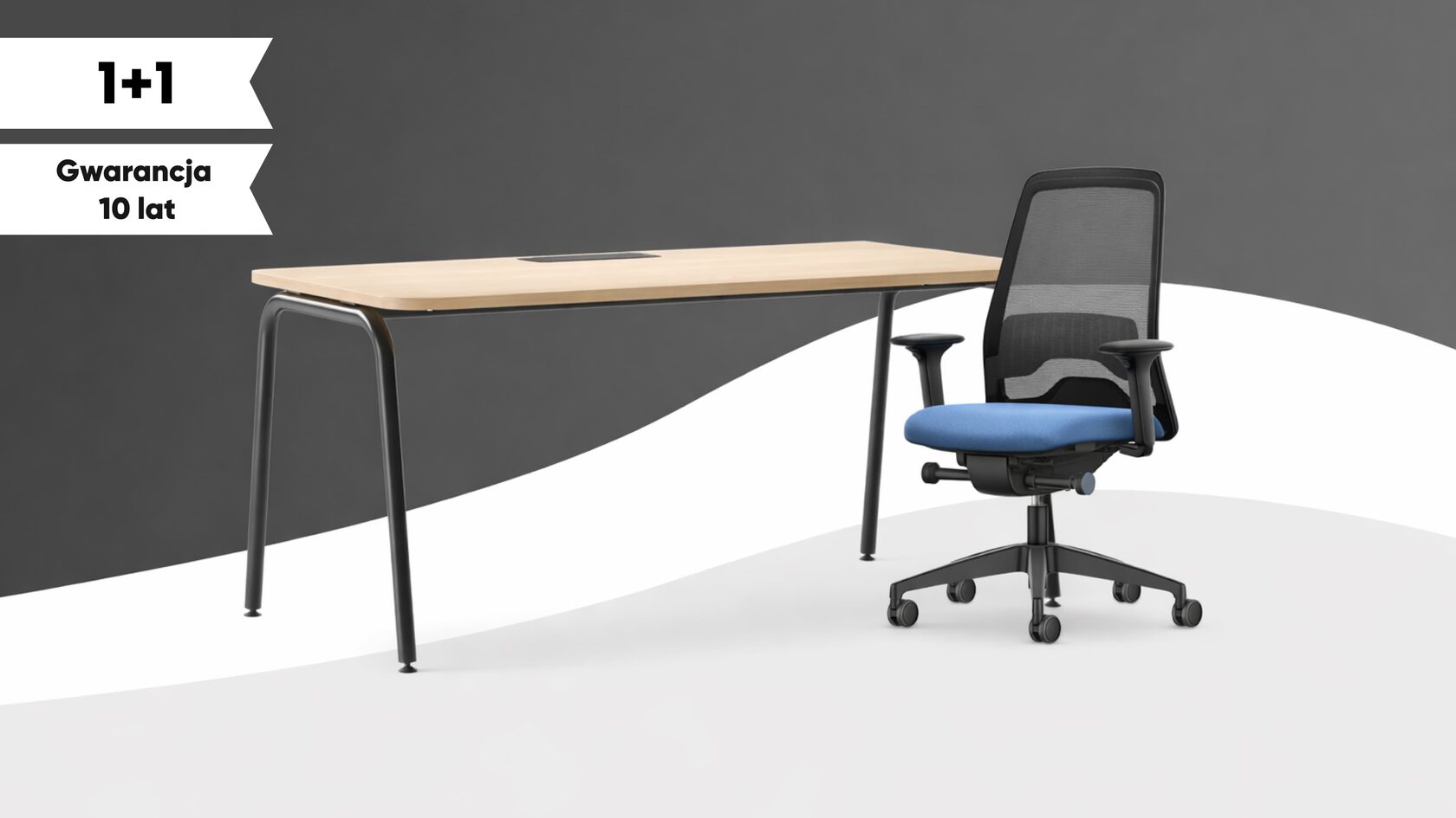 Biurko B-Active (Narbutas) + Krzesło biurowe Every EV253 (Interstuhl).